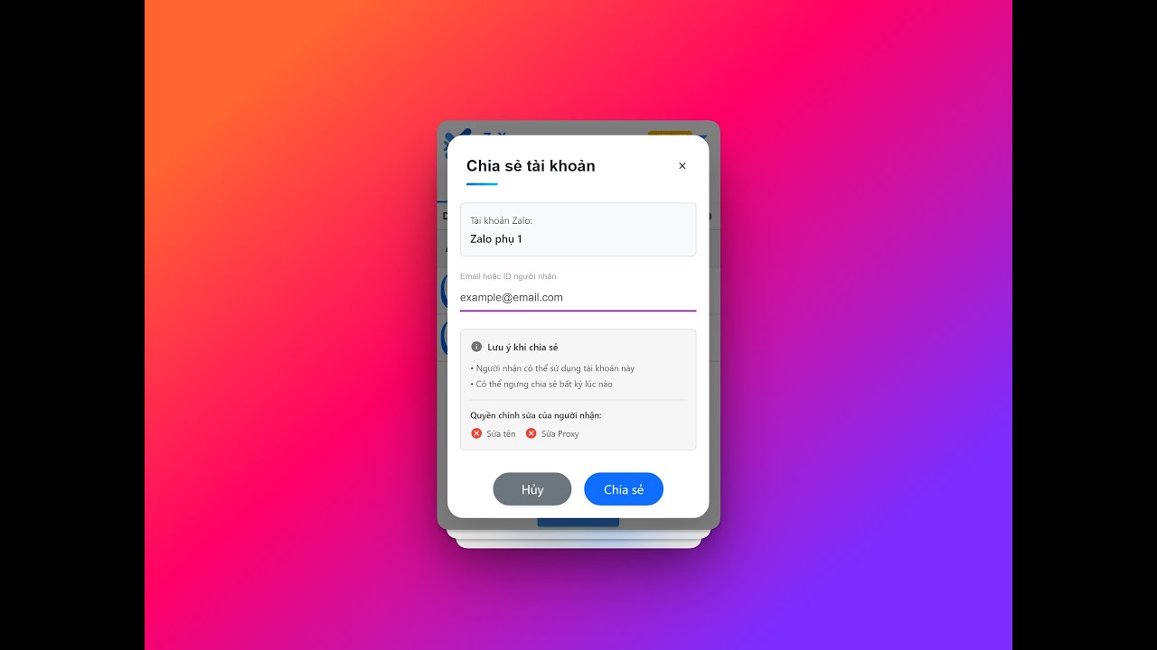 Chia sẻ, quản lý Zalo bằng ID/ Email